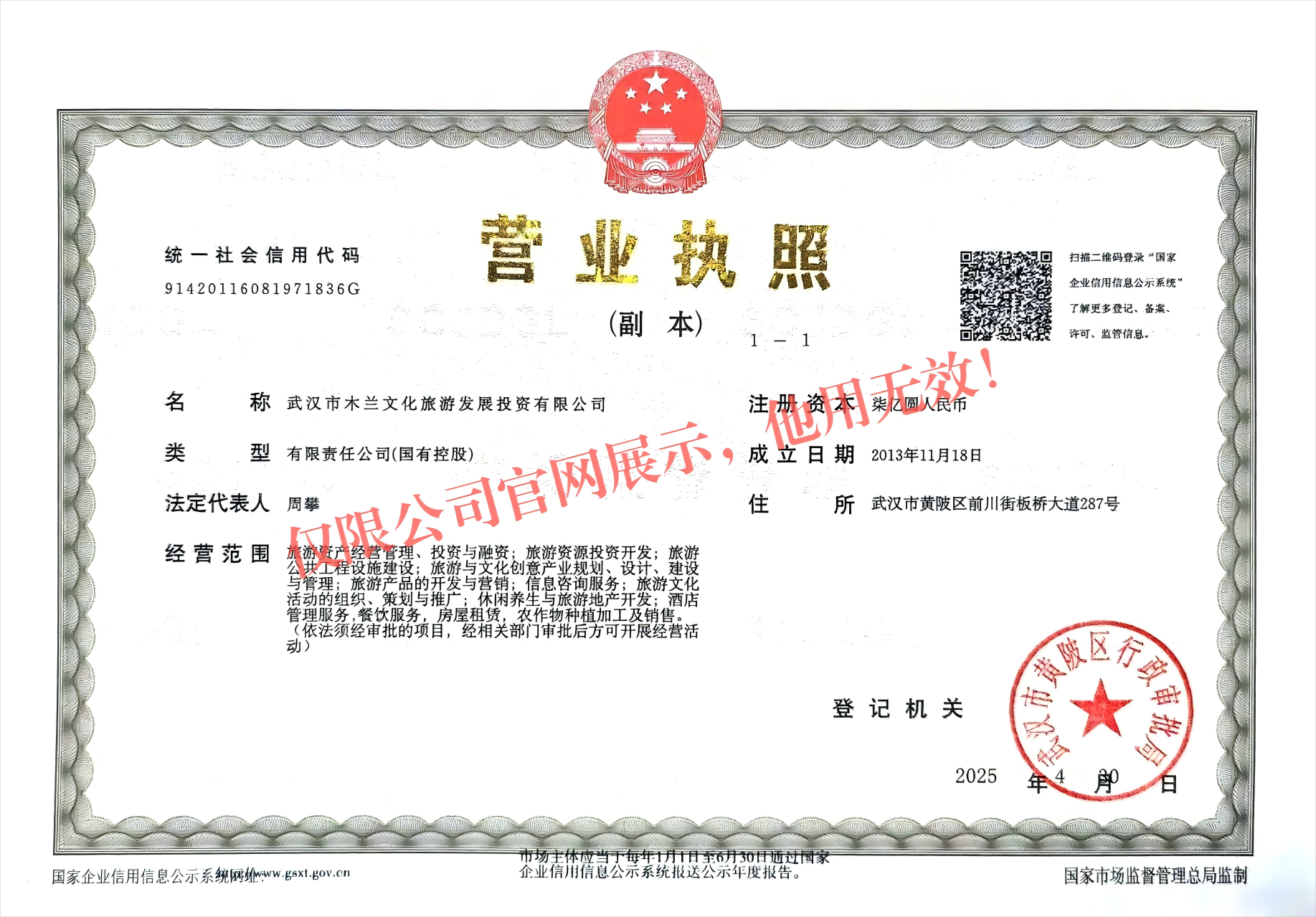 4、武漢木蘭文旅投旅游運營(yíng)管理有限公司,全資子公司。主要承接木蘭山、木蘭湖景區資產(chǎn)管理及旅游商業(yè)運營(yíng)管理,對木蘭山、木蘭湖景區的相關(guān)配套設施及旅游項目進(jìn)行統一策劃、規劃、建設和管理。