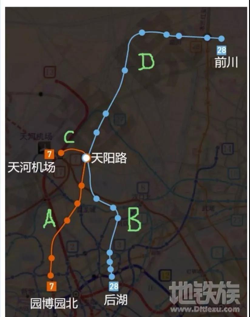 希望這張示意圖能夠幫助大家理解7與28的關(guān)系,7號線(xiàn)=A+C,28號線(xiàn)=B+D,其中A段與D段已批復,拼湊成臨時(shí)的前川線(xiàn),后期等到B段與C段建成后,將恢復正式的前川線(xiàn),即B+D段,7號線(xiàn)恢復為A+C段去機場(chǎng)。