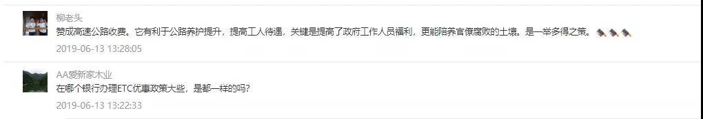 大家紛紛留言表示:高速開(kāi)通ETC全民時(shí)代,省時(shí)、省力、省錢(qián),是一件便民的大好事。