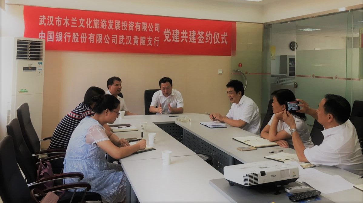 2017年8月3日下午,武漢市木蘭文化旅游發(fā)展投資有限公司與中國銀行股份有限公司武漢黃陂支行黨建共建協(xié)議在中行武漢黃陂支行黨員職工服務(wù)中心正式簽訂。此項協(xié)議的簽訂標志著(zhù)雙方在黨建方面充分發(fā)揮自身優(yōu)勢強強聯(lián)合,標志著(zhù)黨建引領(lǐng)、聯(lián)學(xué)共建、銀企合作活動(dòng)全面啟動(dòng)?;ヂ?lián)共建是銀企合作的創(chuàng )新模式,是雙方面向未來(lái)、攜手共建、協(xié)力共贏(yíng)的一項重要舉措。